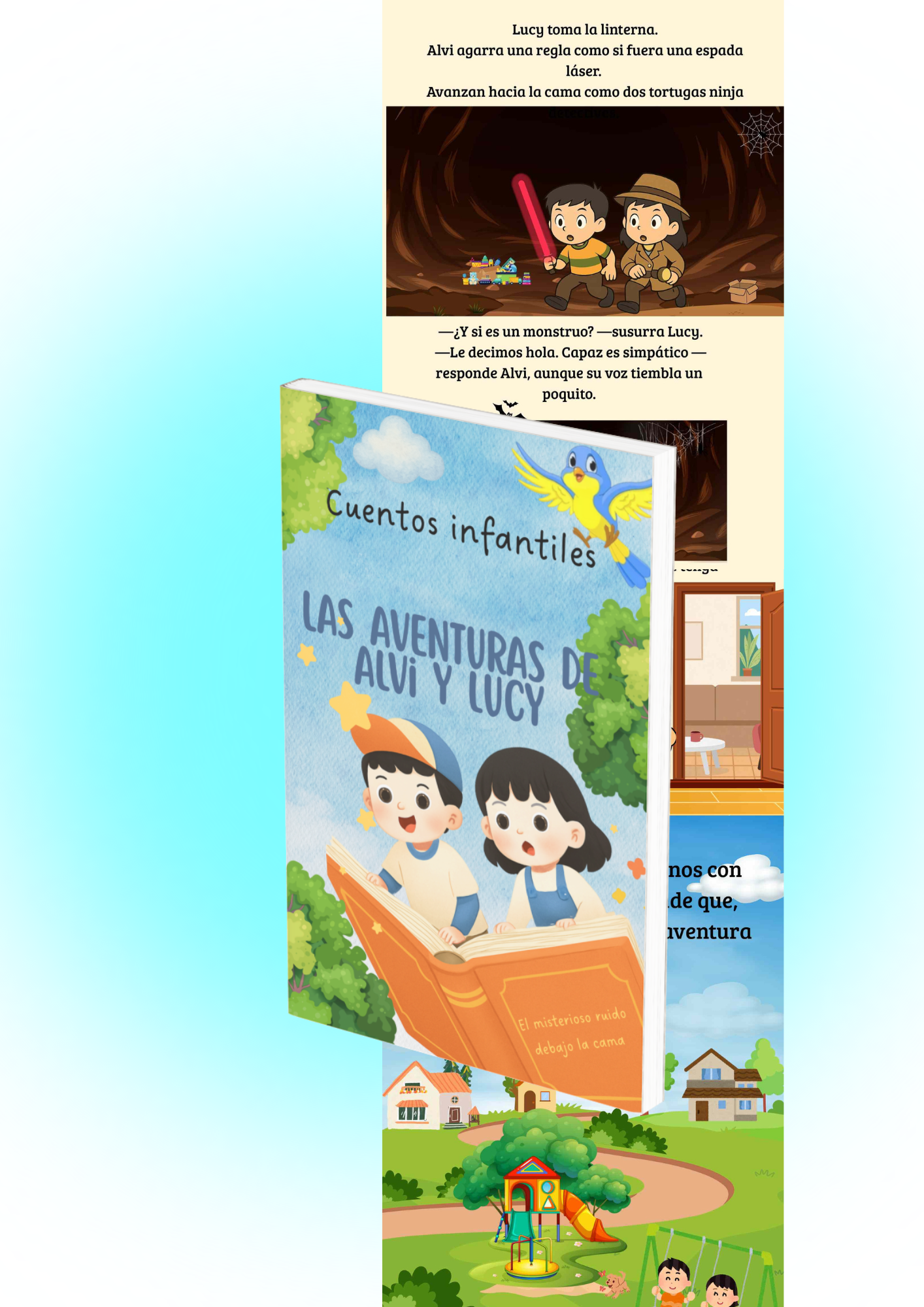 En esta historia Alvi y Lucy resuelven su primer misterio al escuchar un misterioso ruido que venia debajo la cama, una historia con humor fantasias misterios y enseñanzas